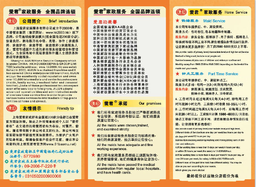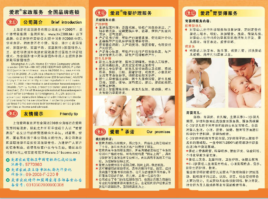 爱君品牌家政 特许加盟国家商务部备案公告 备案号:0310502000900008